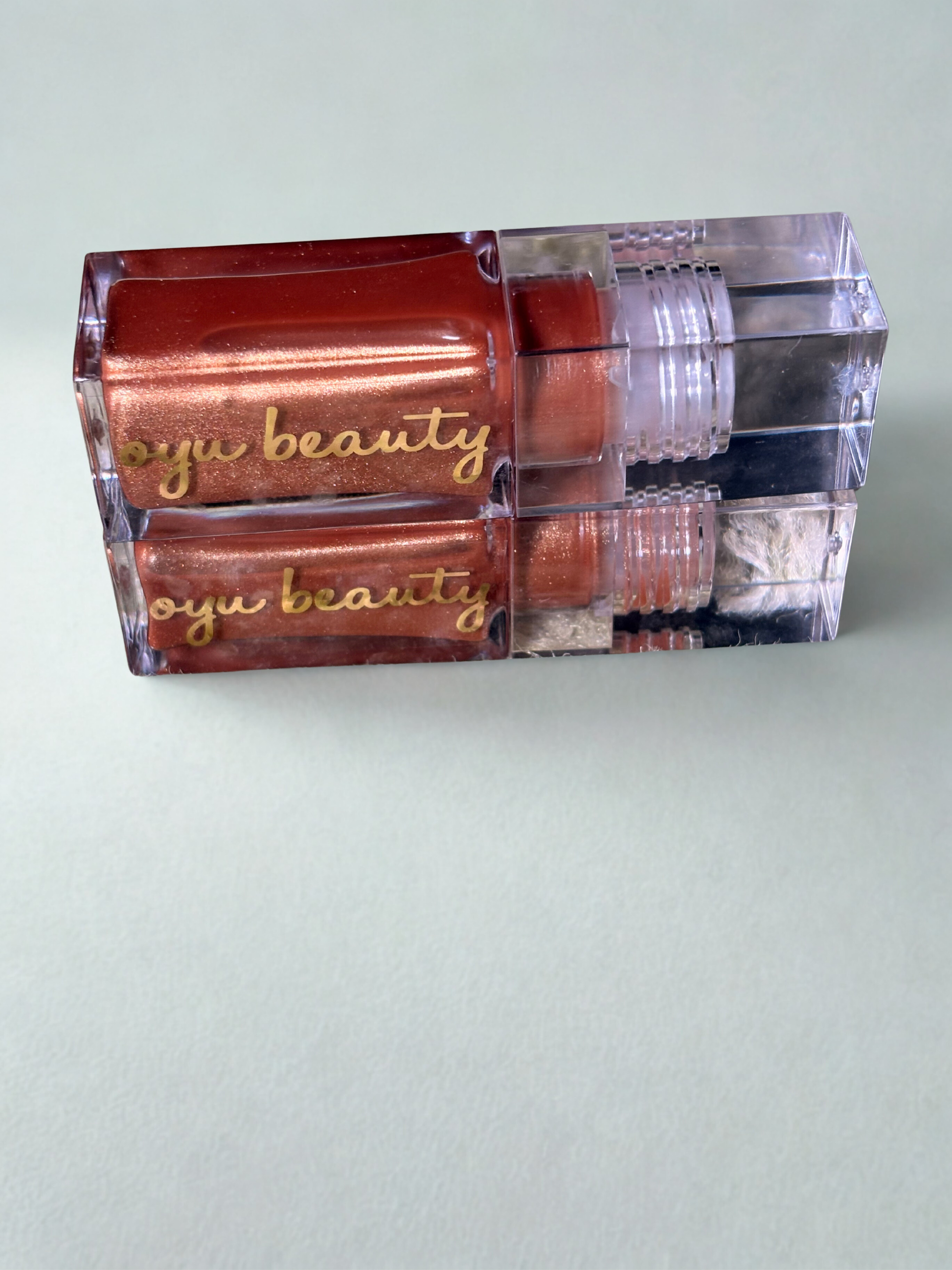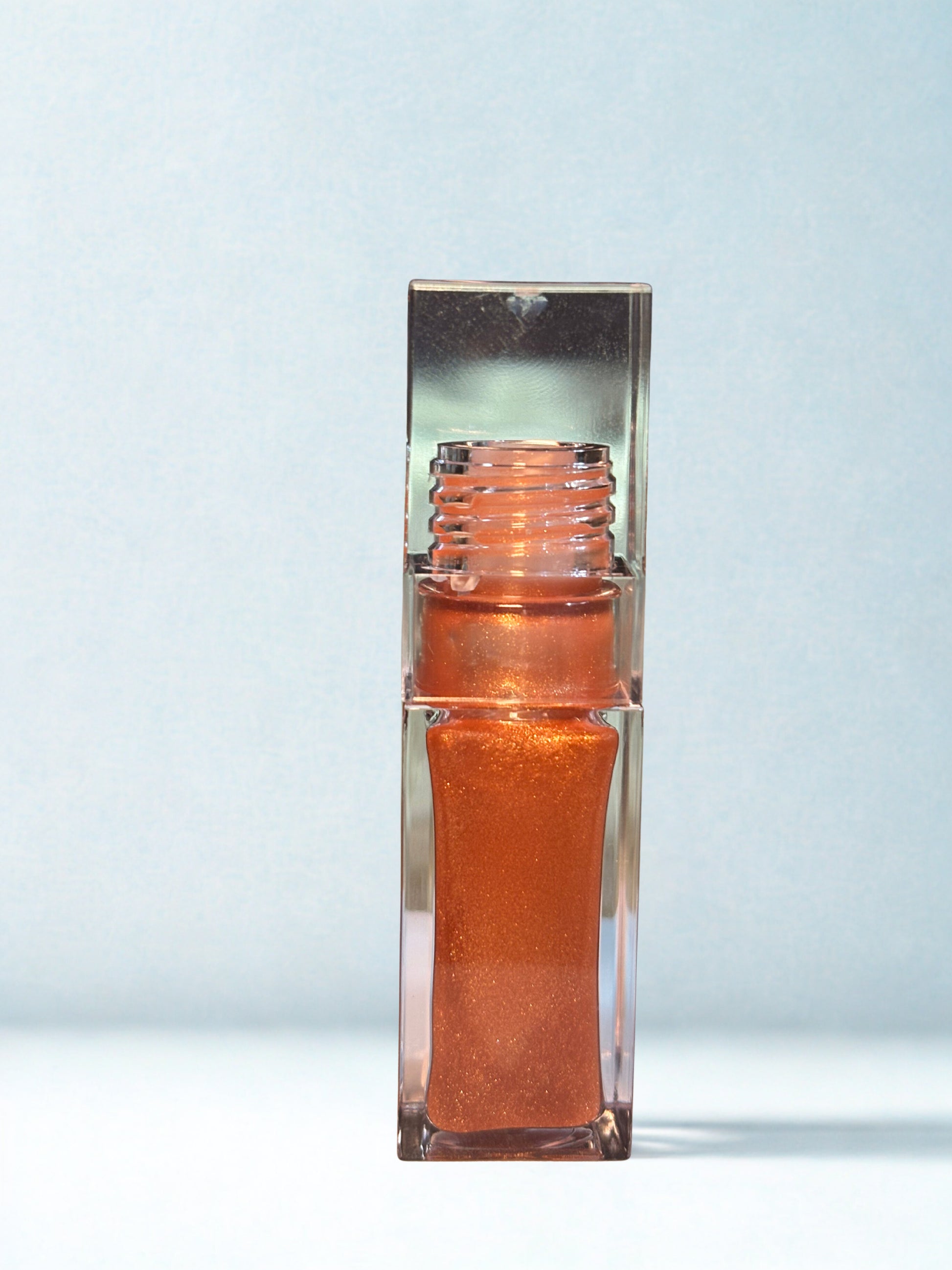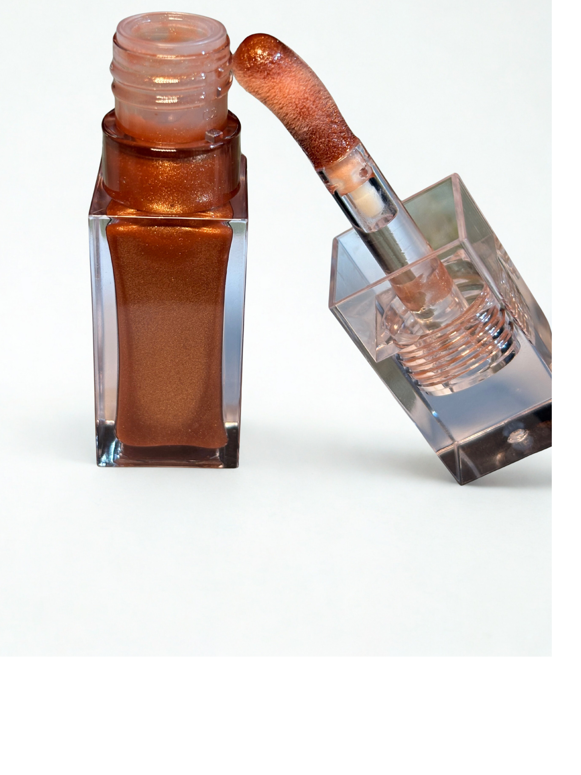 A warm caramel-glow gloss with a sweet scent and juicy shine.